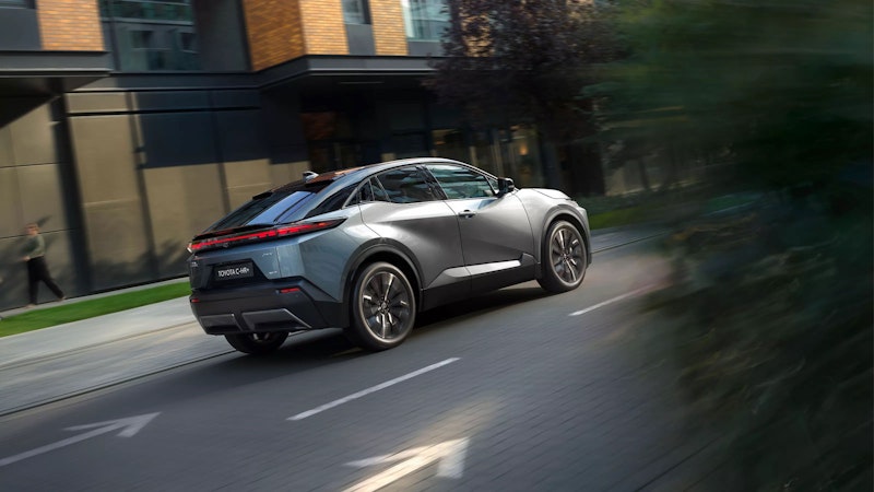 Toyotra C-HR+ - designet blander aerodynamisk coupé-styling med en hevet SUV-holdning for å optimalisere luftstrømmen og øke effektiviteten.